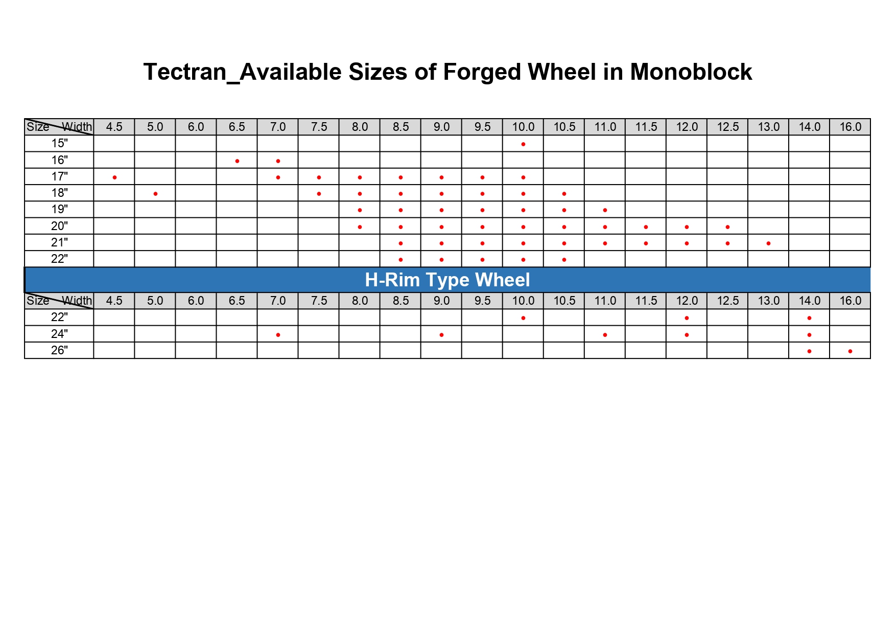 We have lanched a series of forged wheels in monoblock. Please contact us for sizes available.